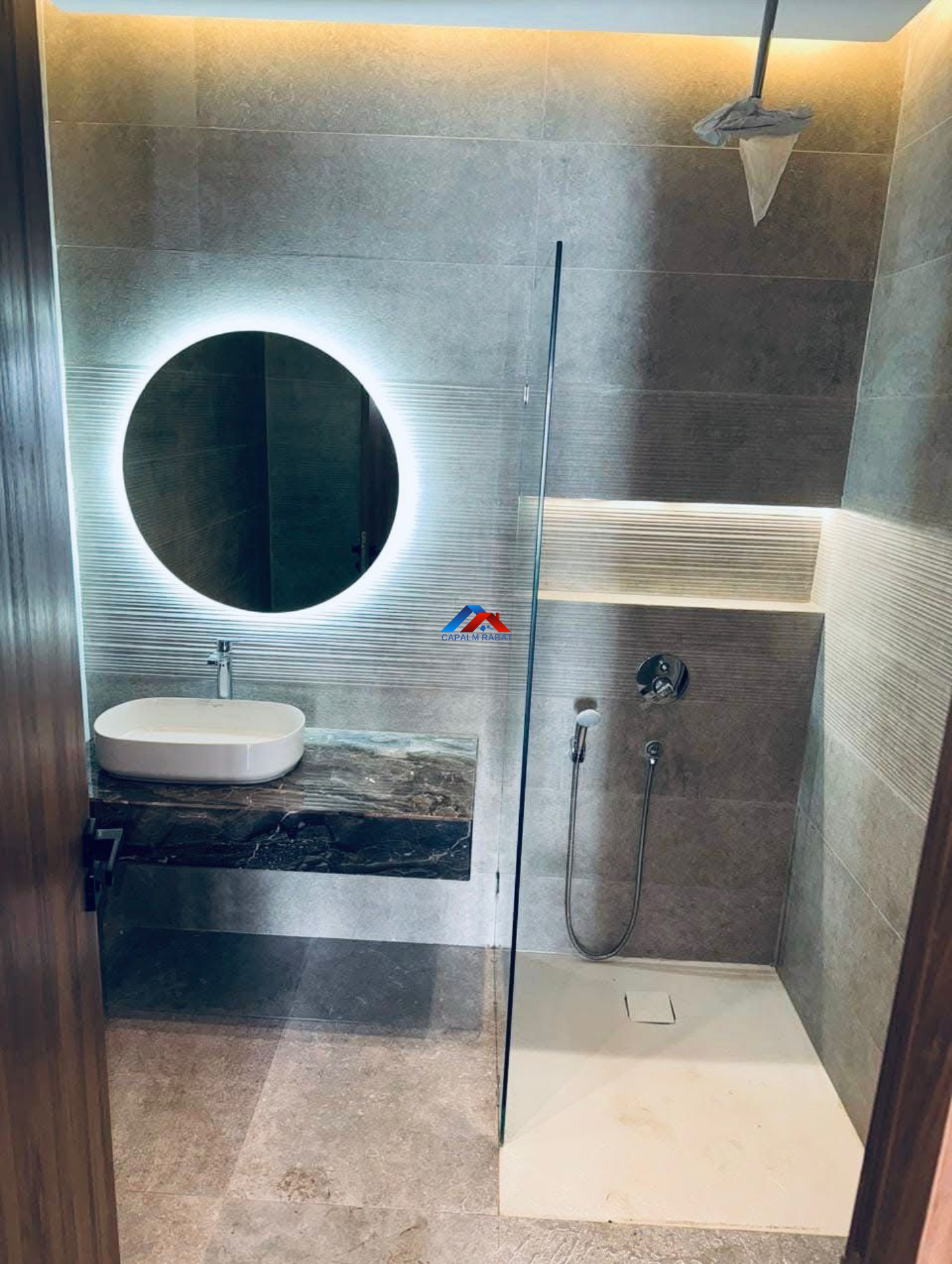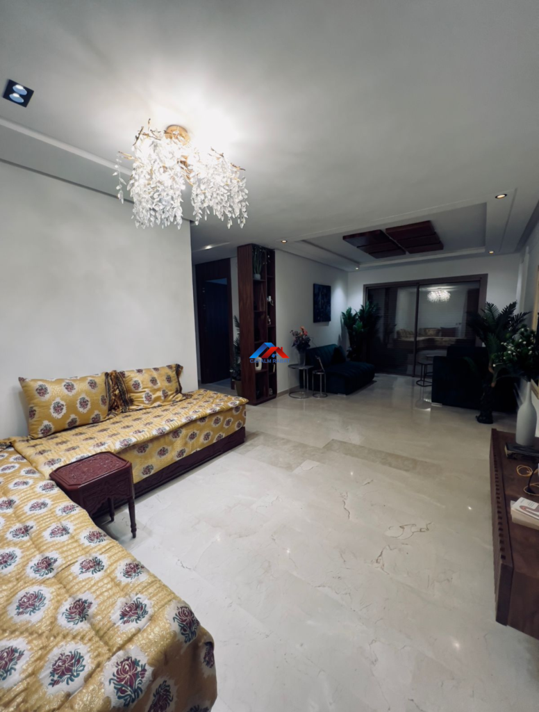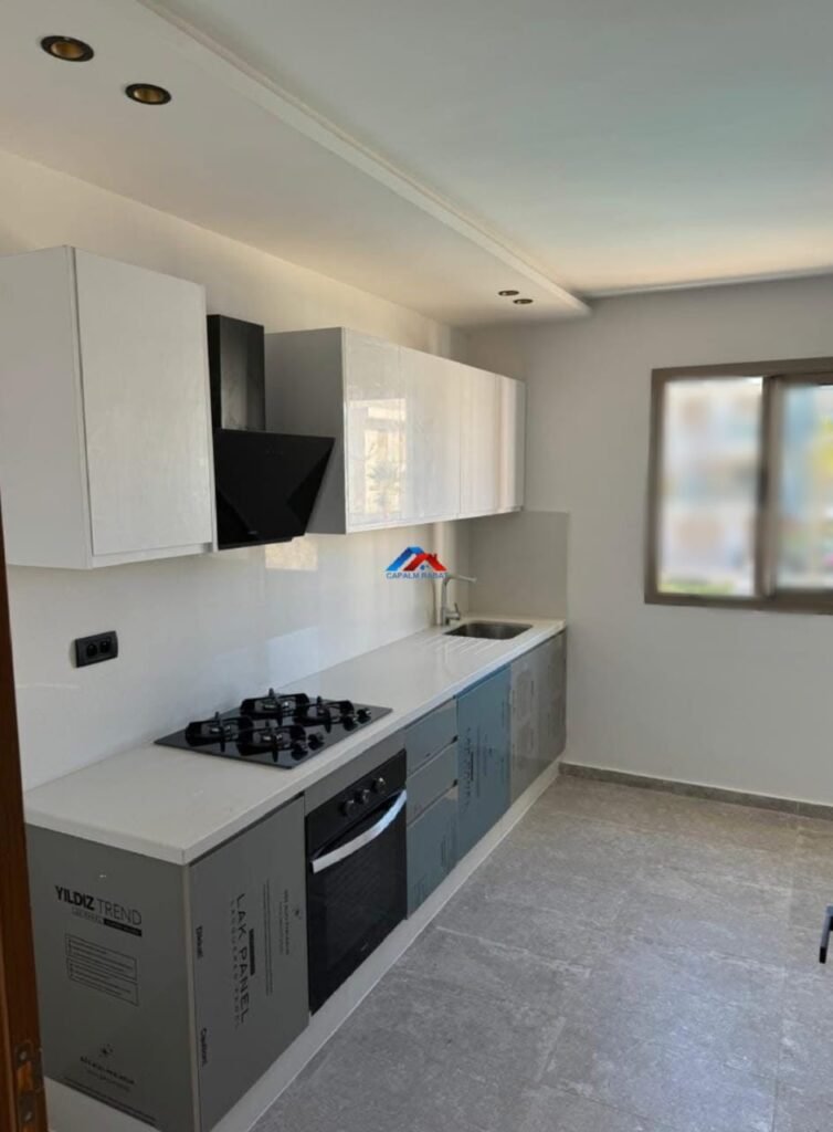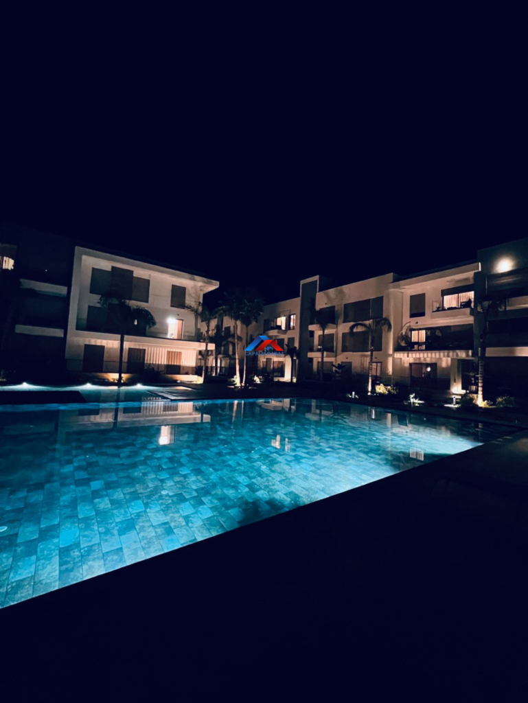 Capalm Rabat agence immobilière met en location Appartement entièrement meublé et neuf, situé à El menzeh au sein d’une résidence fermée et sécurisée avec pisicne et place jeux enfants.