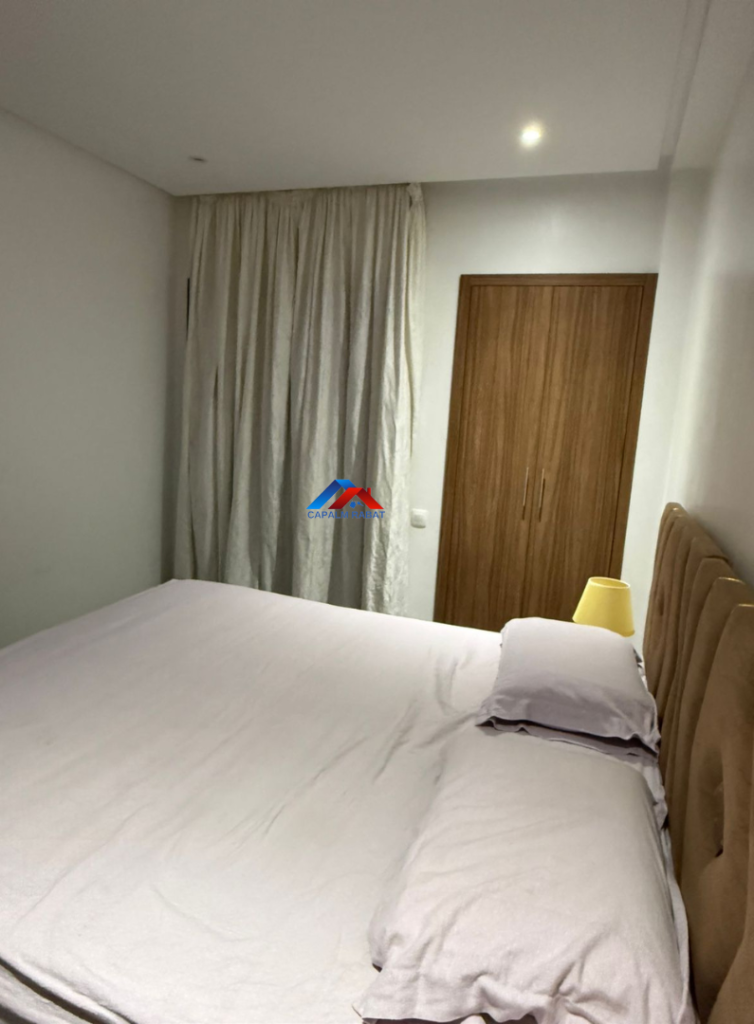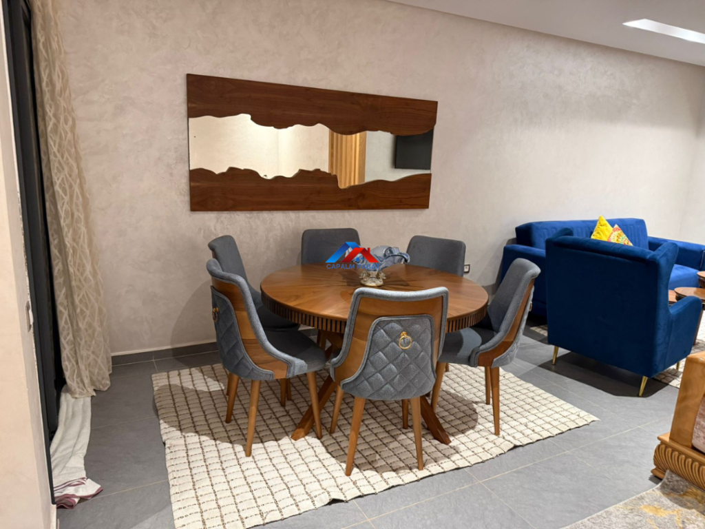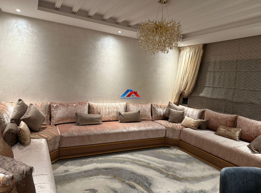 Capalm Rabat agence immobilière met en location un appartement meublé à Harhoura ,d’une superficie de 150 m² situé au 2ème étage au sein d’une résidence fermée avec jardin et piscine .